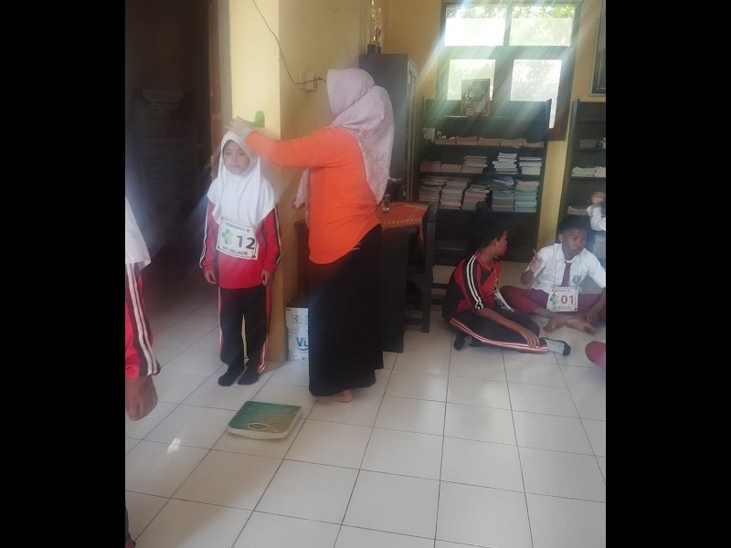 PEMERIKSAAN KUSTA DAN CEK KEBUGARAN OLEH NAKES PUSKESMAS ASEMBAGUS. Sasaran pemeriksaan yaitu siswa kelas 4 s.d kelas 6. Pemeriksaannya diantaranya yaitu pengukuran tinggi badan, penimbangan berat badan, pemeriksaan kusta, senam bersama dipandu guru pjok dan salah satu nakes
